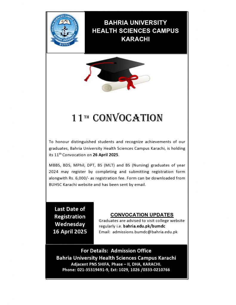 11th Convocation of MBBS, BDS, DPT BS (MLT) and BS (Nursing) 2024