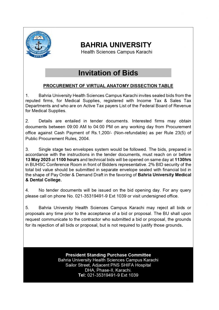 Invitation of Bids (Procurement Of Virtual Anatomy Dissection Table)