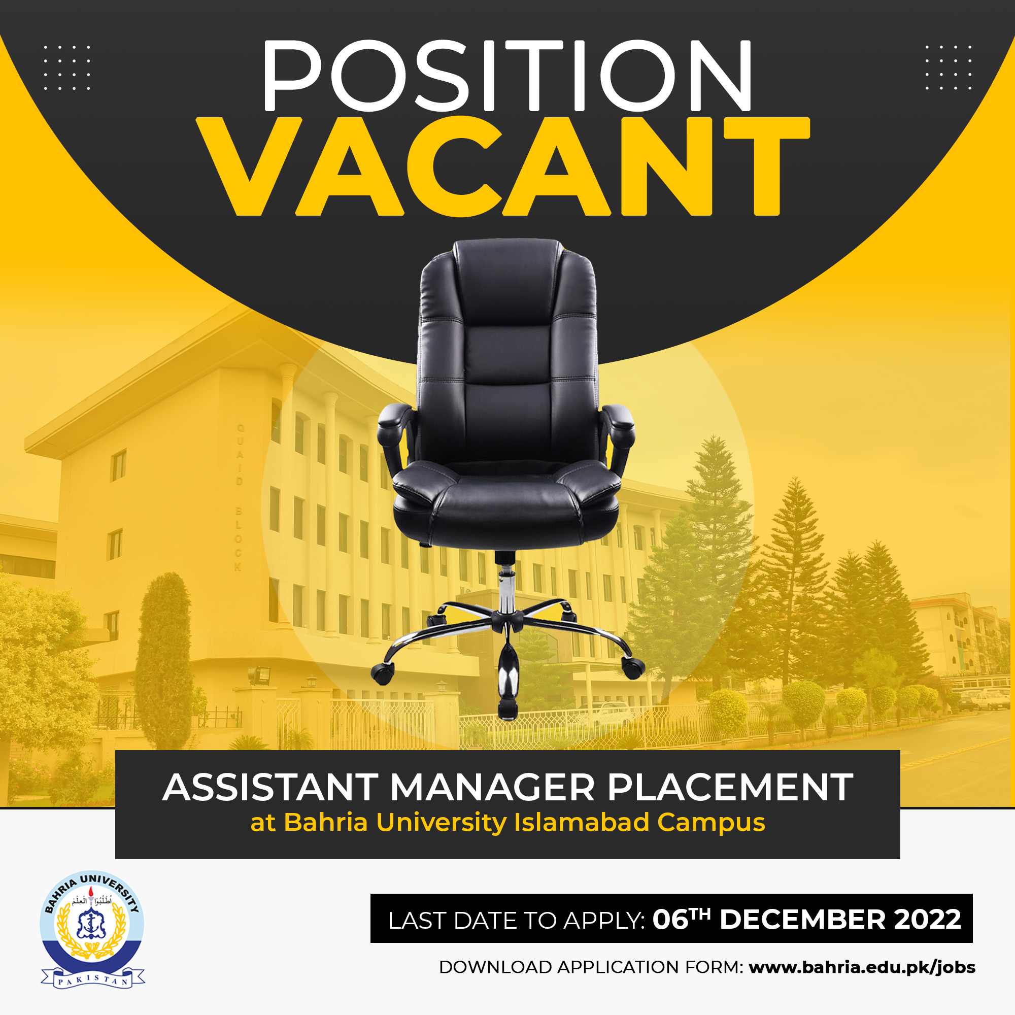 Bahria University invites applications from suitable candidates for the post of AM PLACEMENT at Student Support Centre Bahria University Islamabad Campus