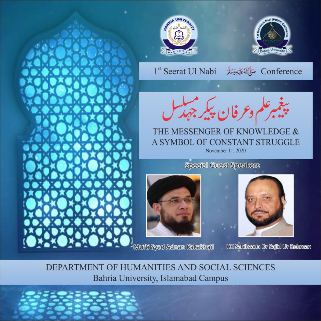 Department of Humanities and Social Sciences(H&SS), Bahria University, Islamabad Campus will be organized 1st Seerat Conference on 11th November 2020 at Bahria University Islamabad Campus.