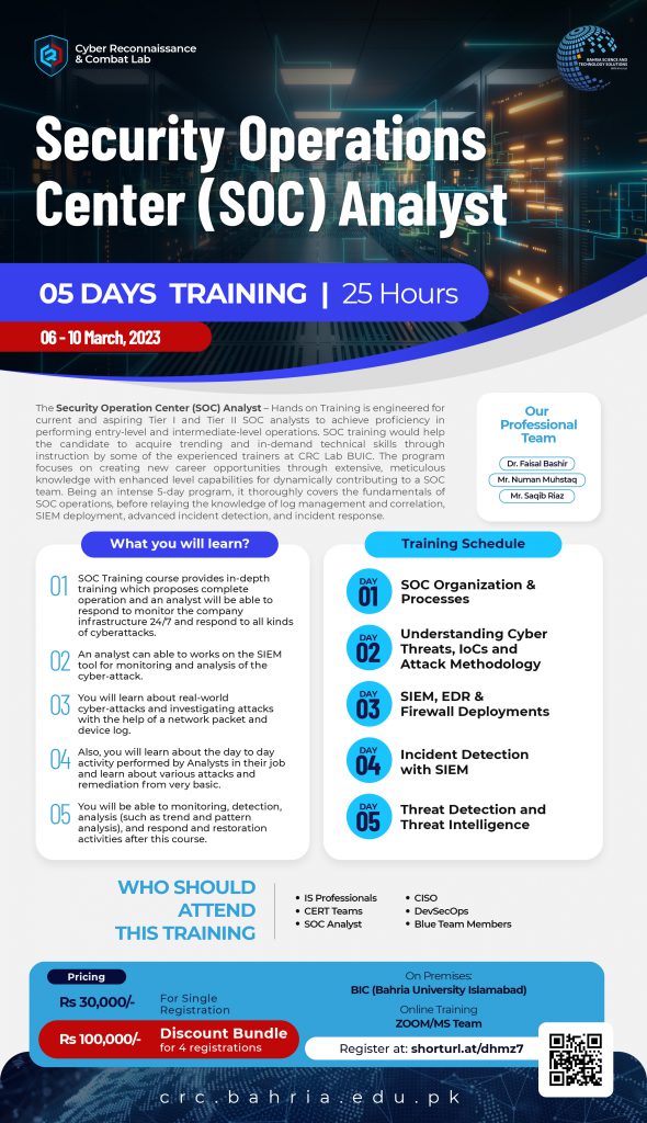 We encourage you to take advantage of this exciting opportunity and register for our SOC Analyst and Cyber threat intelligence training program today. Don’t wait, spaces are limited and filling up fast!