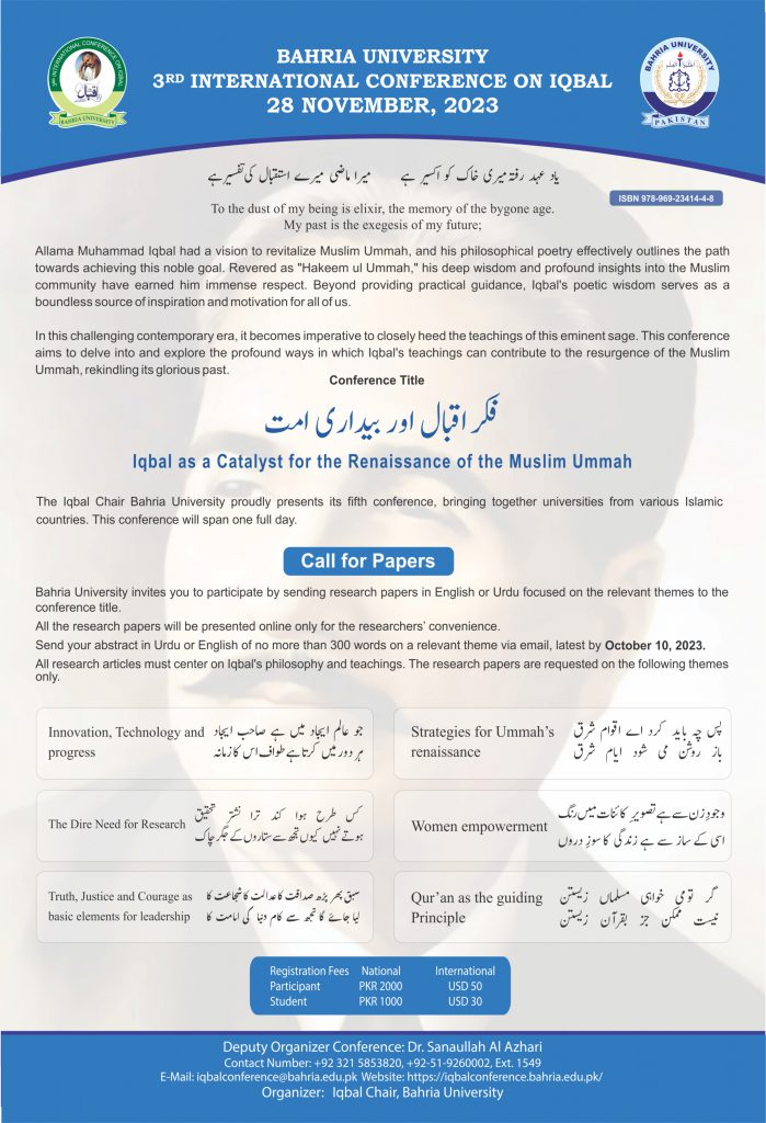 3RD INTERNATIONAL CONFERENCE ON IQBAL 2023 – CALL FOR PAPERS