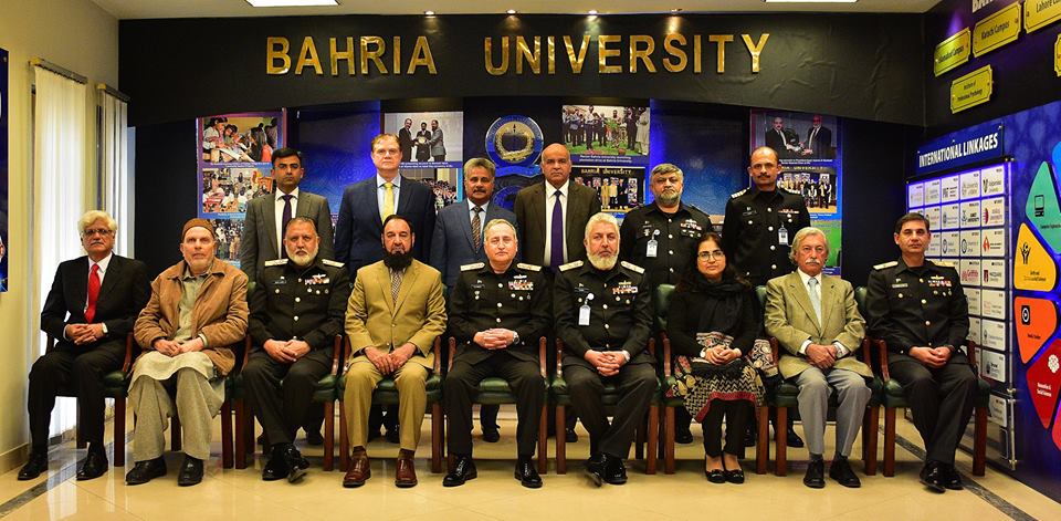The 40th scheduled meeting of the Board of Governors of Bahria University was held on 7th February 2019 at Bahria University Head Office Islamabad. The meeting was chaired by Admiral Zafar Mahmood Abbasi NI(M) Chief of the Naval Staff/ Pro-Chancellor and Chairman Board of Governors Bahria University and attended by the board members. A detailed briefing was given on the progress of various ongoing projects, with special reference to growth of academic domains, new infrastructure, research activities and budget.