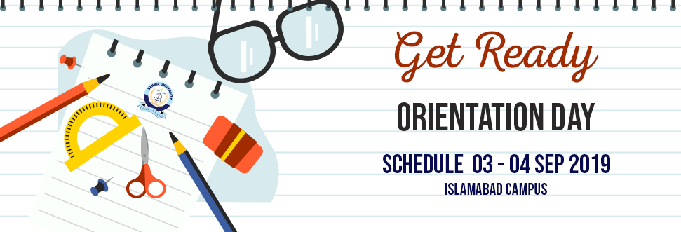 Last updated on September 5th, 2019Director Islamabad Campus Message for New Students PROGRAMME FOR THE ORIENTATION DAYS (03 & 04 SEP, 2019) STUDENTS TO BE SEATED AT 0900 HRS Sr # Presentation Details Duration Time 1 National Anthem – 05 Minutes 09:30 AM 2 Recitation of Holy Quran By Hafiz Muhammad Taqi (Student) First … Continue reading ORIENTATION DAY ISLAMABAD CAMPUS