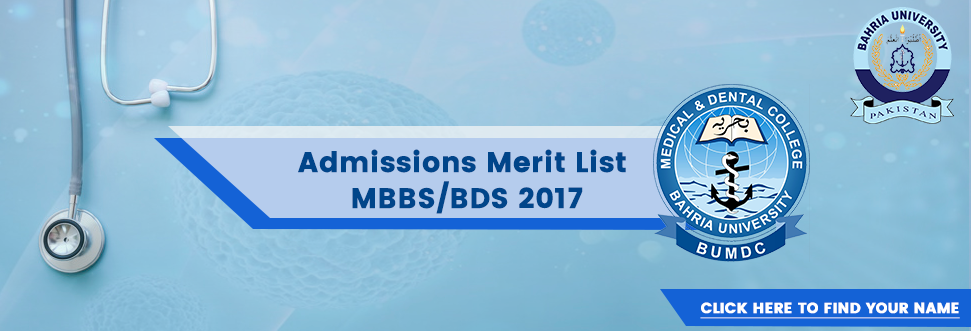 Last updated on November 16th, 2017Bahria University Medical and Dental College Karachi Admissions (Year -2017) Selection List of Candidates for MBBS/BDS (Test Date: 21-Oct-2017) [table id=120 /]