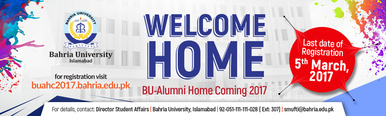 Last updated on June 7th, 2017Bahria University was established on 7th February 2000 by Pakistan Navy through Presidential Ordinance, having genesis from Bahria Institute of Management and Computer Sciences. In all these years the university has excelled in its various fields of academics, sports, extra-curricular activities and has made rapid progress with excellent contributions. To … Continue reading 17th FOUNDATION DAY OF BAHRIA UNIVERSITY