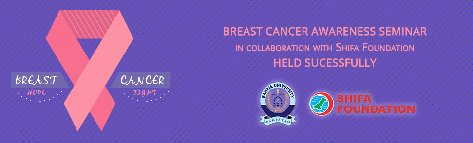 Last updated on June 7th, 2017Bahria University, in collaboration with Shifa Foundation, organized a Breast Cancer Awareness Seminar on Thursday, 20th October, 2016 at BU Presentation Hall, as part of its two day breast cancer campaign in association with Pink Ribbon Pakistan. The two hour all-female seminar was hosted by members of the CSP club … Continue reading BREAST CANCER AWARENESS SEMINAR IN COLLABORATION WITH SHIFA FOUNDATION