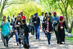 The students gathered in front of the trail where they met with the BUAA team. The President of BUAA addressed the students and briefed them about the activity. Before the initiation of the drive, water bottles, gloves and garbage collection bags were distributed to the students.