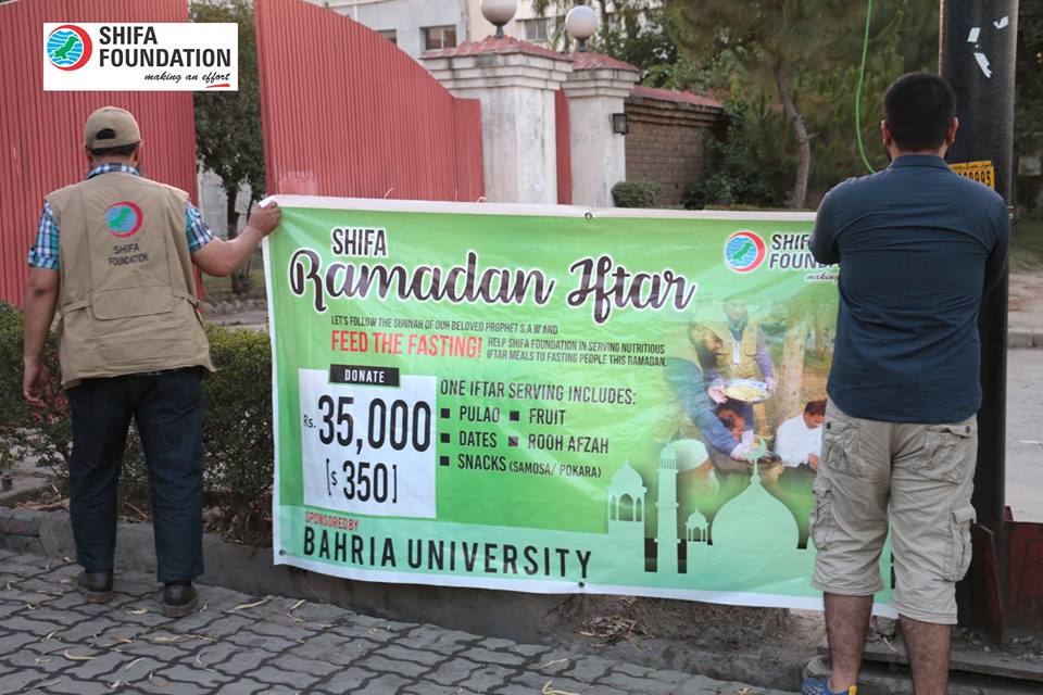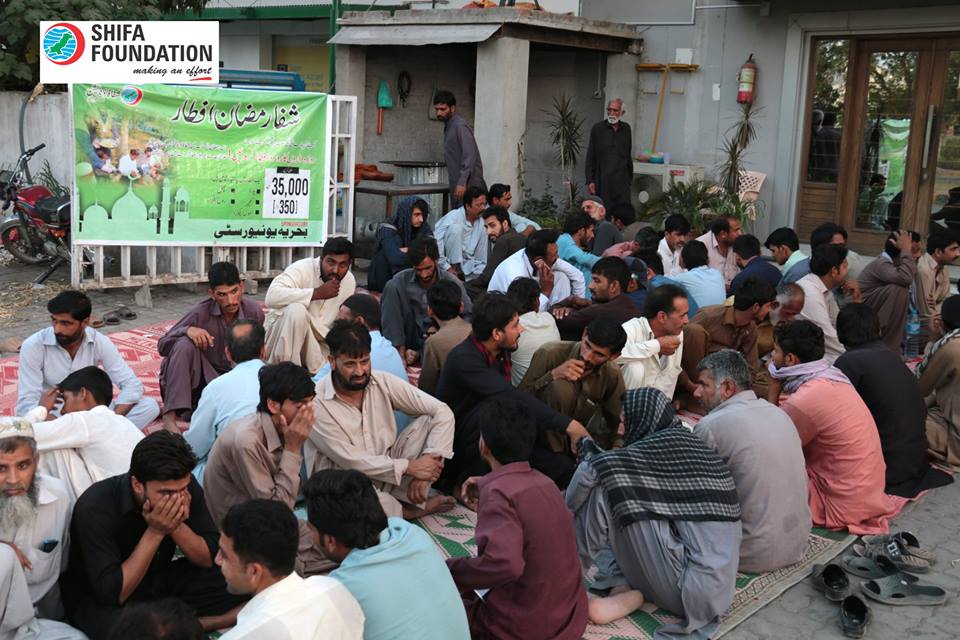 With the sponsorship of Bahria University-Islamabad, Shifa Foundation arranged an “Iftar meal” for the deserving people in Islamabad. Almost 200 people were provided with Iftar boxes during this event which included laborers and other low income individuals. This activity was carried out in Sector I-9, Islamabad where a huge ratio of labor is found. For this specific activity, Bahria University Islamabad joined hands with Shifa Foundation to promote the true spirit of Ramadan. This activity was a part of Shifa Foundation’s#RamadanAppeal2018 #Feedthedeservingfamilies. Shifa Foundation regularly organizes such charitable activities to ensure provision of food with dignity for all. Under this campaign, Shifa Foundation is further collaborating with different organizations also to expand the scope of activities in other parts of the country.