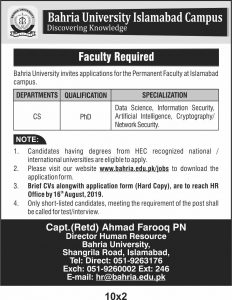 FACULTY REQUIRED: ISLAMABAD CAMPUS