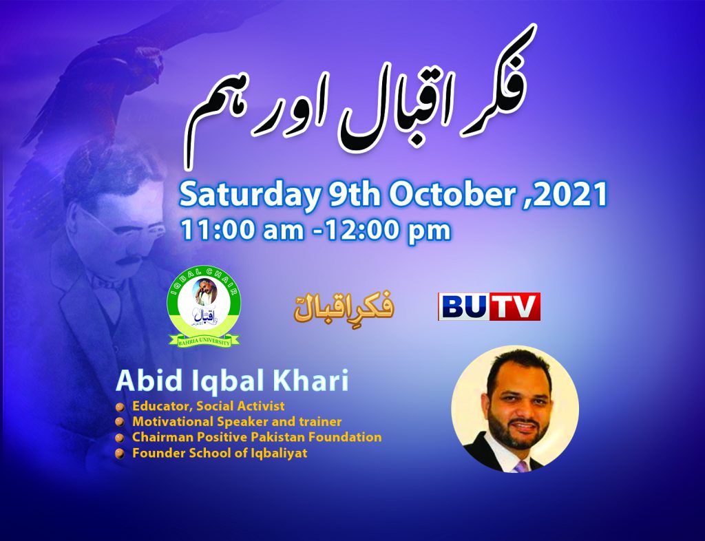 Mr. Abid Iqbal Khari invokes this fact in a very effective manner. Mr. Khari has MS in Management and is an Iqbal Scholar and popular youth motivational speaker and trainer. He is Chairman Positive Pakistan Foundation and founder at School of Iqbaliyat.