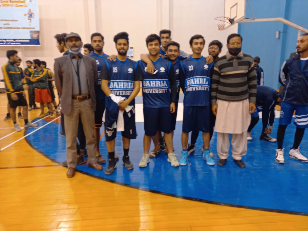 HEC Intervarsity Men Basketball Championship 2020-21 was scheduled w.e.f 11, March 2021 at National University of Modern Languages (NUML)Islamabad. The event was played on a knockout basis. Sixteen teams of prominent Federal Universities participated in the championship. Bahria University team played well in the pool match against ARID Agricultural University Rawalpindi and won by 74-30 points. The second match was quarterfinal against the COMSAT University Islamabad and won by a lead of 52-30 points. The semifinal was played between BU and International Islamic University Islamabad teams which BU won by a lead of 74-28 points. The BU team was played final of the event against NUML university Islamabad. Bahria University team showed outstanding effort and won by 62-48 points. BU team also qualified for the All Pakistan Intervarsity Championship which will be held in Lahore in coming month.