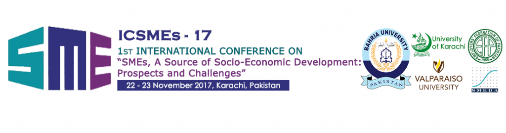 International Conference on SMEs, A source of Socio-economic Development: Prospects and Challenges (ICSMEs-17) that will be held during November 22-23, 2017 at the Karachi Campus of Bahria University. The primary goal of the conference is to promote research and developmental activities on the prospects and challenges associated with the SMEs’ operations in Pakistan and in other countries of the world.  The conference will be an ideal platform for academics, business practitioners and students to share views and experiences on the dimensions of SMEs, such as Research & Innovation, Socio-Economic Growth, Support Policy, Relationship and Infrastructure management as well as related fields.  All presented papers will be published in the proceedings of the conference and selected papers in the department’s HEC accredited bi-annual journal “Global Management Journal of Corporate Studies (GMJACS).