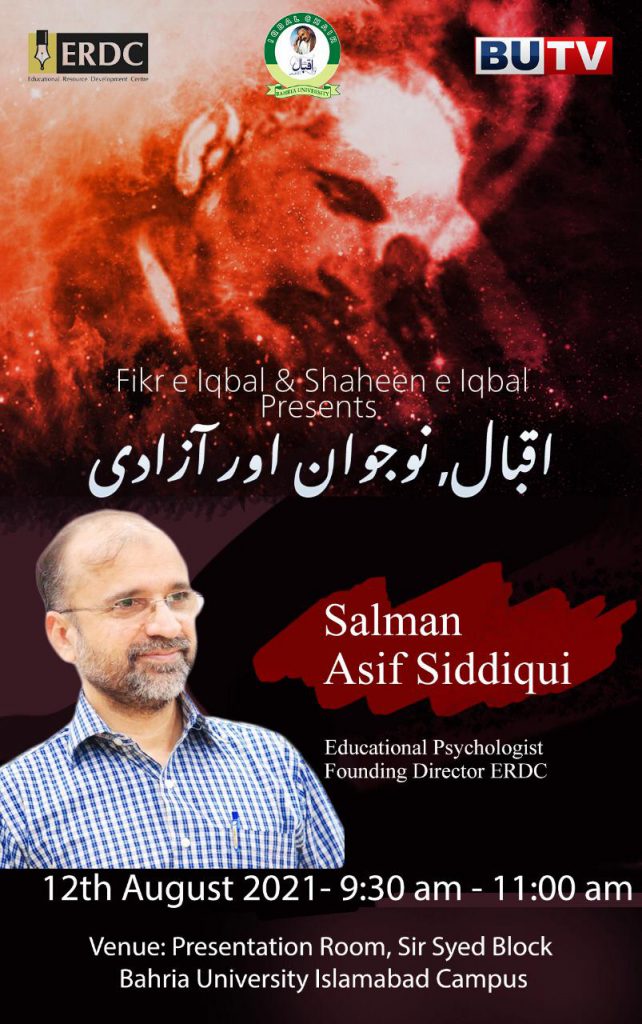 The commemorate the 75th Independence day of Pakistan Fikr e Iqbal, Iqbal Chair in collaboration with the BUTV is organizing an interactive session with Mr. Salman Asif Siddiqui, Motivational Speaker and Educational Psychologist