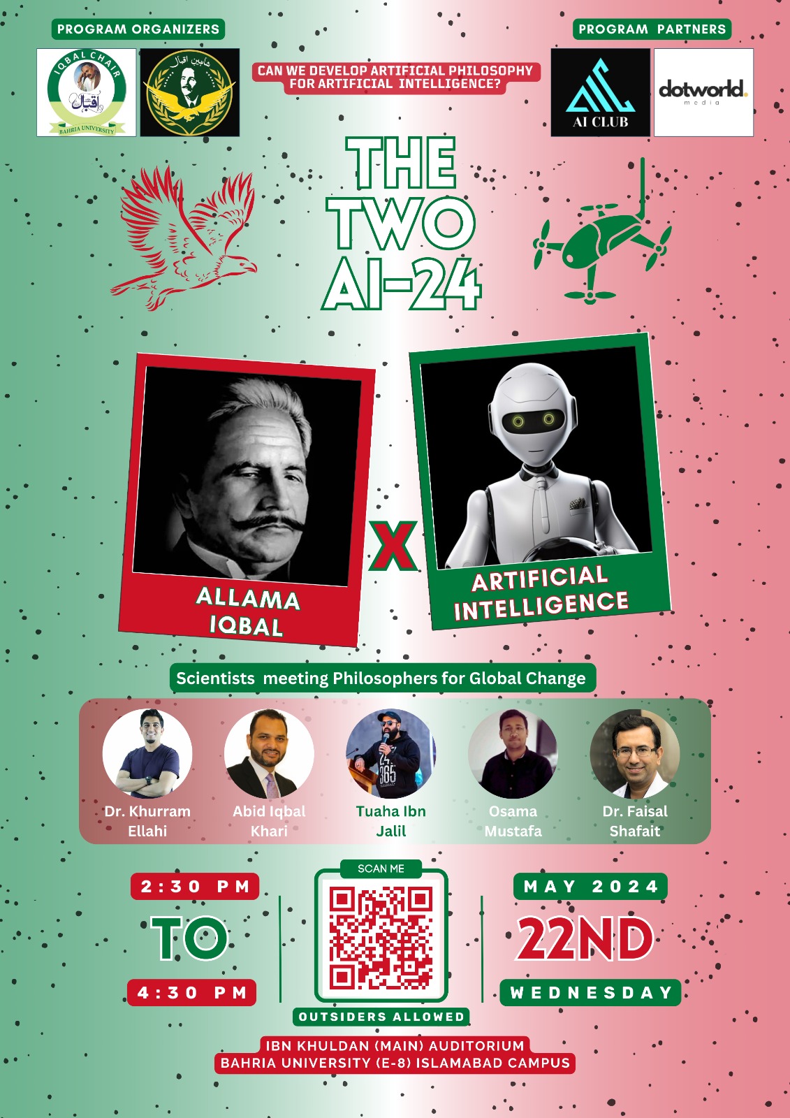 Building upon the success of the previous two programs since 2022, Iqbal Chair Bahria University brings to you the third program (Panel Discussion) of THE TWO AI’ 24: Allama Iqbal & Artificial Intelligence- Can we Develop Artifical Philosophy for Artificial Intelligence. Explore the Intersection of Timeless Wisdom & Technological Innovation! 🤖💡