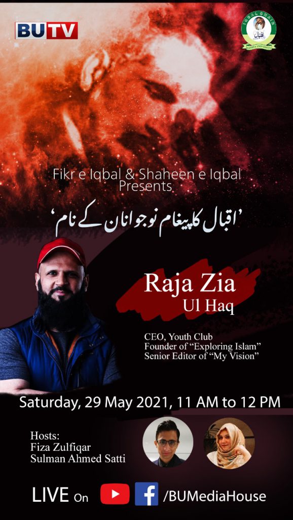 Shaheen e Iqbal & Fikr e Iqbal in collaboration with Iqbal Chair and BUTV are honored to present a talk by renowned motivational speaker Mr. Raja Zia ul Haq, CEO Youth Club.