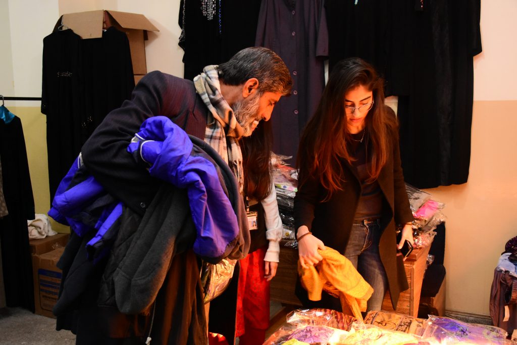 On our first day, we were instructed, guided and accompanied by the members of CSP into accomplishing the goal of The Mall of Humanity. A total number of 84 cartons were donated by various countries which consisted clothes for all age groups (infants, children, adolescents and adults) and both genders. The cartons consisted of all sorts of clothes such as jeans, shirts, westerns and eastern wear of females, abayas, sweaters and even shoes! All these varieties were categorized. We were instructed to sort out the clothes, press them and pack them into plastic bags to give them a new look. Four good hours were spent daily in an effort to put a smile on someone’s face.