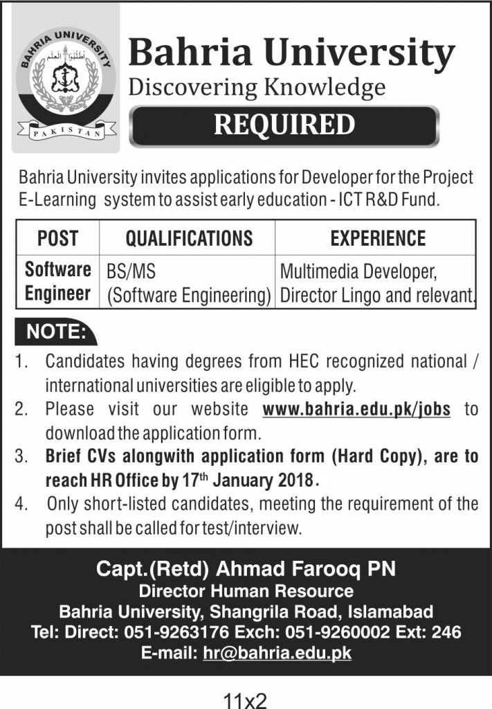 Multimedia Developer Required – Islamabad Campus