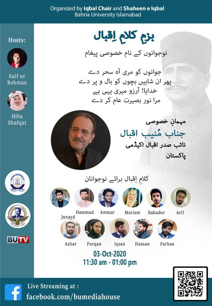 Iqbal Chair is honored to present recitation of Kalam e Iqbal by students from different Universities of Pakistan in the Iqbal Seminar Series This program is organized by Shaheen e Iqbal, BUTV and Iqbal Chair Bahria University.