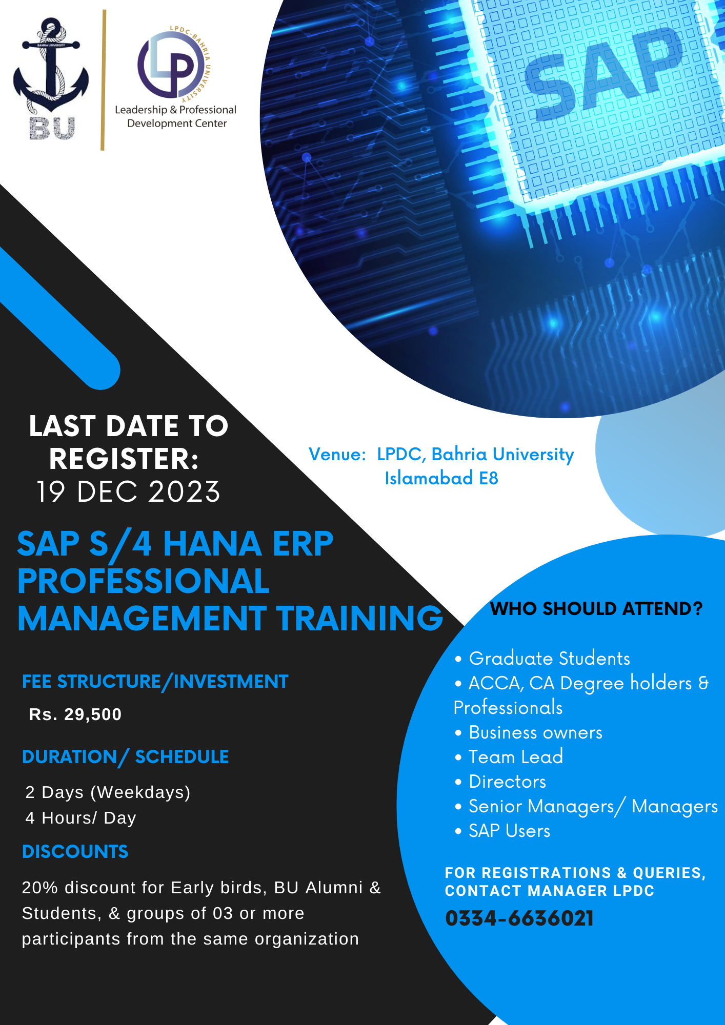 • Venue: LPDC, Bahria University Islamabad E8 Campus