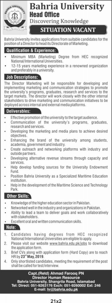 SITUATION VACANT: DIRECTOR MARKETING